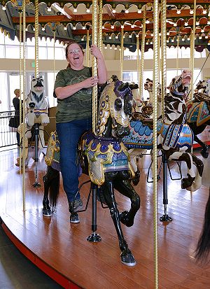 Of course, our own family has had it's share of birthdays. We've been very happy to have the Carousel of Dreams in Kennewick. It's a lovely park-sized carousel carved a bit over a hundred years ago by Charles Carmel, one of the truly great carousel carvers. This makes a wonderful place to take the grandchildren (or anyone, really) and we've visited several times this summer.